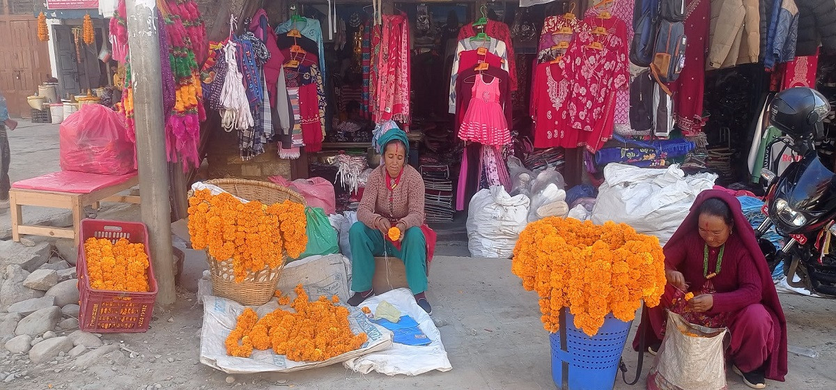 तिहार नजिकिँदै गर्दा जुम्लाको सदरमुकाम खलंगा बजार सयपत्री फूलको सुवासले महकिएको छ। परम्परा, उत्पादन र आत्मनिर्भरता मिसिएको यो दृश्यले न केवल तिहारको रौनक बढाएको छ, स्थानीय अर्थतन्त्रलाई समेत चलायमान बनाएको छ।