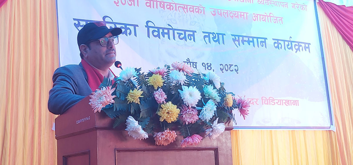 राष्ट्रिय प्रकृति संरक्षण कोषद्वारा सदर चिडियाखाना व्यवस्थापनको ३०औँ वार्षिकोत्सवका अवसरमा आज जावलाखेलमा आयोजित स्मारिका विमोचन तथा सम्मान कार्यक्रममा बोल्दै उनले मानव र प्राणीबीचको सम्बन्ध सुमधुर बनाउन चिडियाखानाले महत्त्वपूर्ण भूमिका खेलेको भन्दै सदर चिडियाखाना व्यवस्थापन पक्षको प्रशंसा गरे।