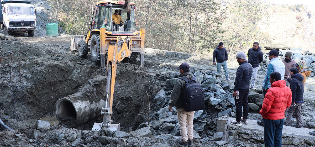 दरवाङ–मुना–ढोरपाटन सडक योजनाअन्तर्गत झिनडाँडामा ह्युम पाइप अडाउन पर्खाल निर्माणका लागि जगमा पिसिसी ढलान गर्दा माटो मिसिएको गिट्टी प्रयोग भएको पाइएको हो। योजना अनुगमनका लागि सोमबार झिनडाँडा पुगेका गण्डकी प्रदेशसभा सदस्य रेशमबहादुर जुग्जाली (सुविन), धवलागिरि गाउँपालिकाका अध्यक्ष प्रेमप्रसाद पुन, उपाध्यक्ष रेशम पुनमगरले ढलान भत्काएर पुनर्निर्माण गर्न लगाएका हुन्।