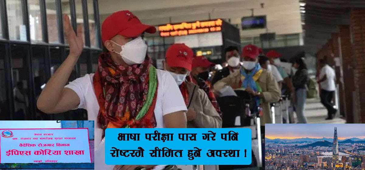नेपालीले कोरियन भाषा परीक्षा उत्तीर्ण गर्दैमा दक्षिण कोरिया जान पाइने भन्ने छैन । कोरिया भाषा उत्तीर्ण गरेका सबै नेपाली दक्षिण कोरिया जान पाउने अवस्था नरहेको रोजगार अनुमति प्रणाली (ईपीएस) शाखाले स्पष्ट पारेको छ । कोरियाले माग गर्ने श्रमिक संख्या सीमित हुँदा भाषा परीक्षा पास भएका परीक्षार्थी रोस्टरमै सीमित हुने अवस्था सिर्जना भएको हो ।