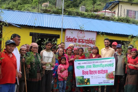 फलफूलका बिरुवा बाँड्दै हिँडिरहेका युवा कृषि विज्ञ