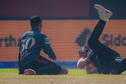 दीपेन्द्रसिंह ऐरीले चितवनका ओपनर डेभिड मलानलाई ‘डाइरेक्ट हिट’मार्फत रनआउट गरेका हुन्।