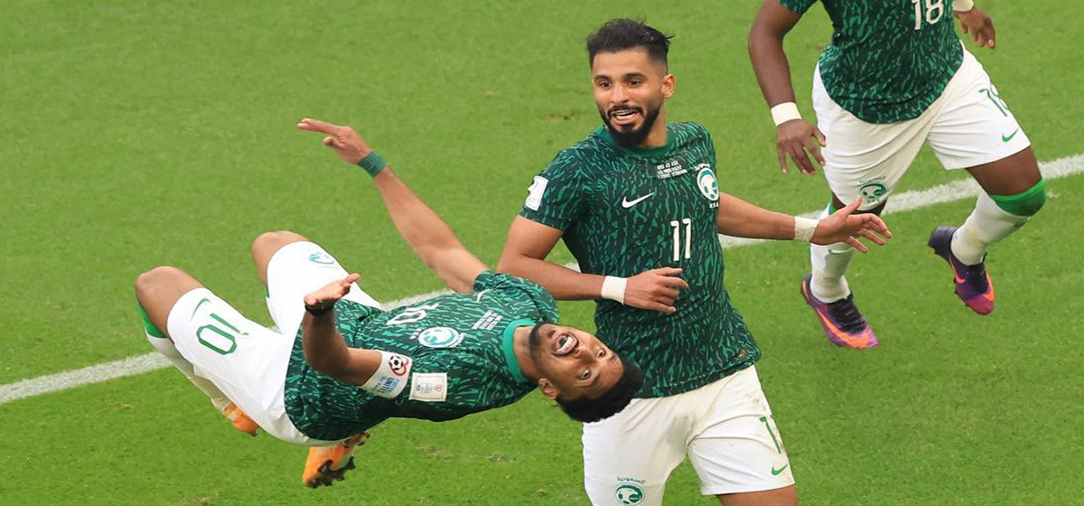 लुसाइल स्टेडियममा साउदी अरेबियाले अर्जेन्टिनाविरुद्ध पुनरागमन गर्दै जित निकालेको हो। प्रतिस्पर्धात्मक खेलमा सुरुआती अग्रता अर्जेन्टिनाले बनाएको थियो। कप्तान लियोनल मेस्सीले १०औं मिनेटमा पेनाल्टीबाट गोल गर्दै अर्जेन्टिनालाई सुरुआती अग्रता दिलाएका थिए।