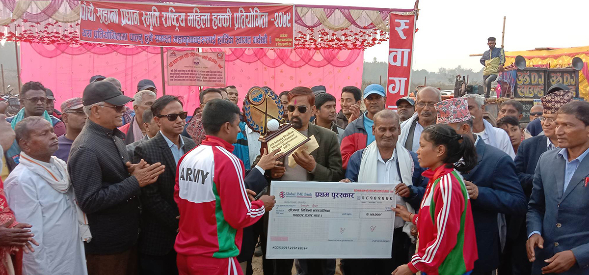 धनुषाको मिथिला नगरपालिका नक्टाझिजमा आयोजित पाँचौं संस्करणको सहाना प्रधान स्मृति राष्ट्रिय महिला हक्की प्रतियोगिताको उपाधि विभागीय टोली नेपाल आर्मीले जितेको छ।