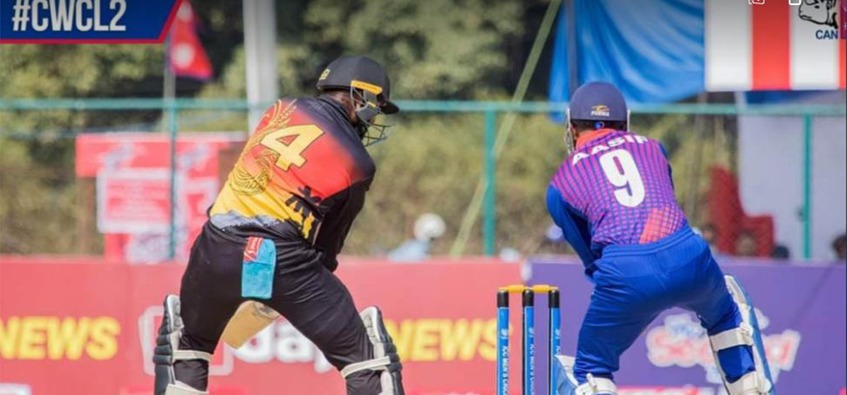 नेपालले आइसिसी विश्वकप लिग २ त्रिकोणात्मक ओडिआई सिरिज अन्तर्गत पपुवा न्युगिनी विरुद्ध तेश्रो सफलता हात पारेकोछ । जितको लागि २ सय ९८ रनको विशाल विजयी लक्ष्य पछ्याएको पिएनजीले ११ ओभर ३ बलमा पहिलो तथा १३ ओभर ३ओभर दोश्रो विकेट गुमाएको हो । नेपालका लागि दिपेन्द्रसिंह र्एैरीले एक विकेट लिएका हुन भने एक जना रन आउट भएका हुन । तेश्रो विकेट सन्दीप लामिछानेले लिएका हुन । १४ दशमलब ३ ओेभरमा सन्दीप लामिछानेले तेश्रो विकेट लिएका हुन । पिएनजी ताजास्थीतीमा १७ ओभरमा तीन विकेटको क्षतिमा ९६ रन बनाएर खेलिरहेको छ ।