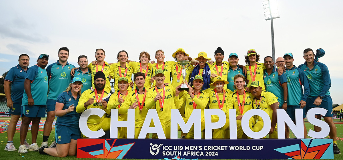 आइसीसी यू–१९ विश्वकप क्रिकेटको उपाधि अस्ट्रेलियाले हात पारेको छ। आइतवार भएको विश्वकपको फाइनल खेलमा भारतलाई ७९ रनले हराउँदै अस्ट्रेलिया चौथो पटक उपाधि जित्न सफल भएको हो।