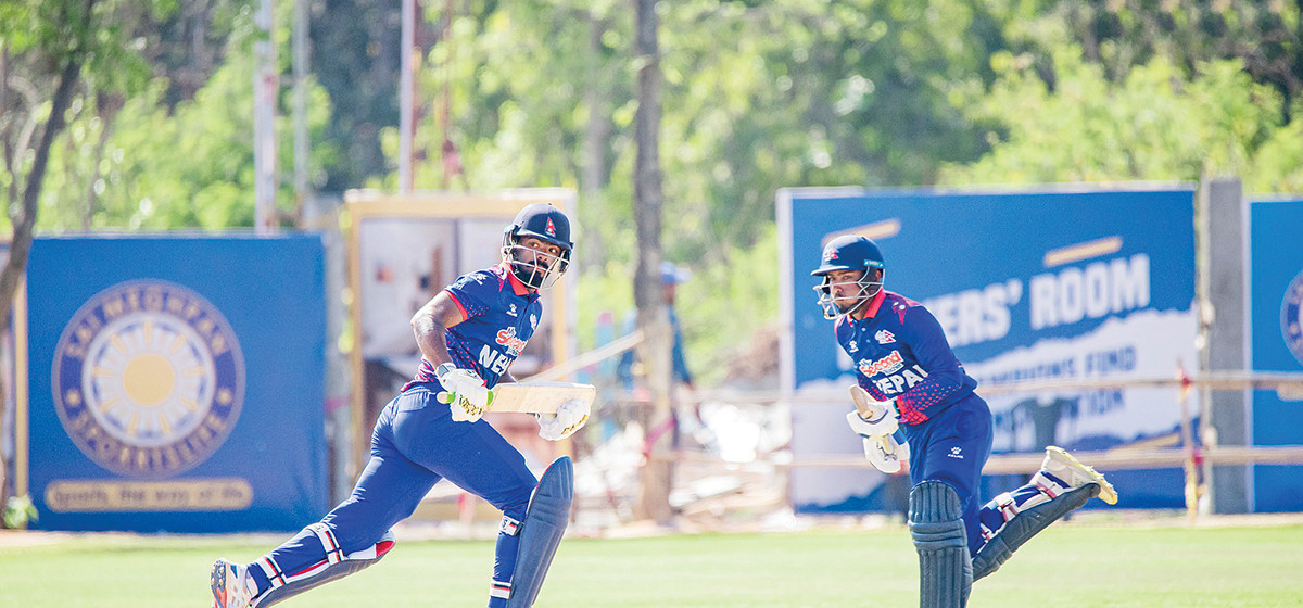 जबाफी ब्याटिङ गरेको नेपाल १८.५ ओभरमा ११९ रनमा समेटियो। नेपालका सन्दीप जोराले सर्वाधिक ५६ रनको योगदान गरे। ४३ बल खेलेका उनले चार चौका र तीन छक्का प्रहार गरे। विवेक यादवले १७ रन र कुशल भुर्तेलले १६ रन बनाए। त्यसबाहेक अन्य ब्याटर क्रिजमा टिक्नै सकेनन्।