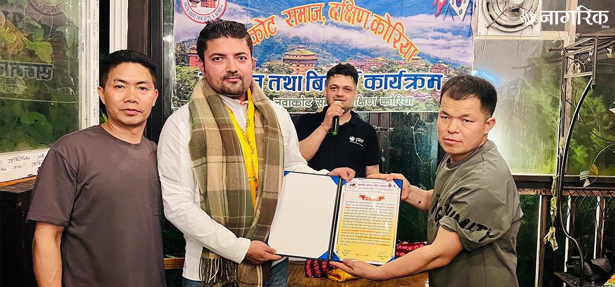 कार्यक्रममा नुवाकोट समाज दक्षिण कोरियाका अध्यक्ष बुद्धि बहादुर तामाङ र एनआरएनए एनसिसीका निवर्तमान सदस्य सोम वाइवा तामाङले सम्मान पत्र हस्तान्तरण गरेका थिए।