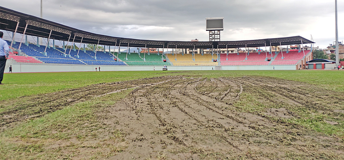 त्रिपुरेश्वरस्थित दशरथ रंगशालाको मैदान मर्मत गरिरहेको माउन्ट एभरेस्ट स्पोर्ट्स एन्ड इभेन्ट प्रालिका सिइओ थमन भुसालले बाहिरबाट रोलर अगाडि बढाऊ भनेर कराइरहँदा अपरेटर जबाफ दिन्थे ‘हिलोमा फसिसक्यो बरु धकोल्न आउनुस् न!’