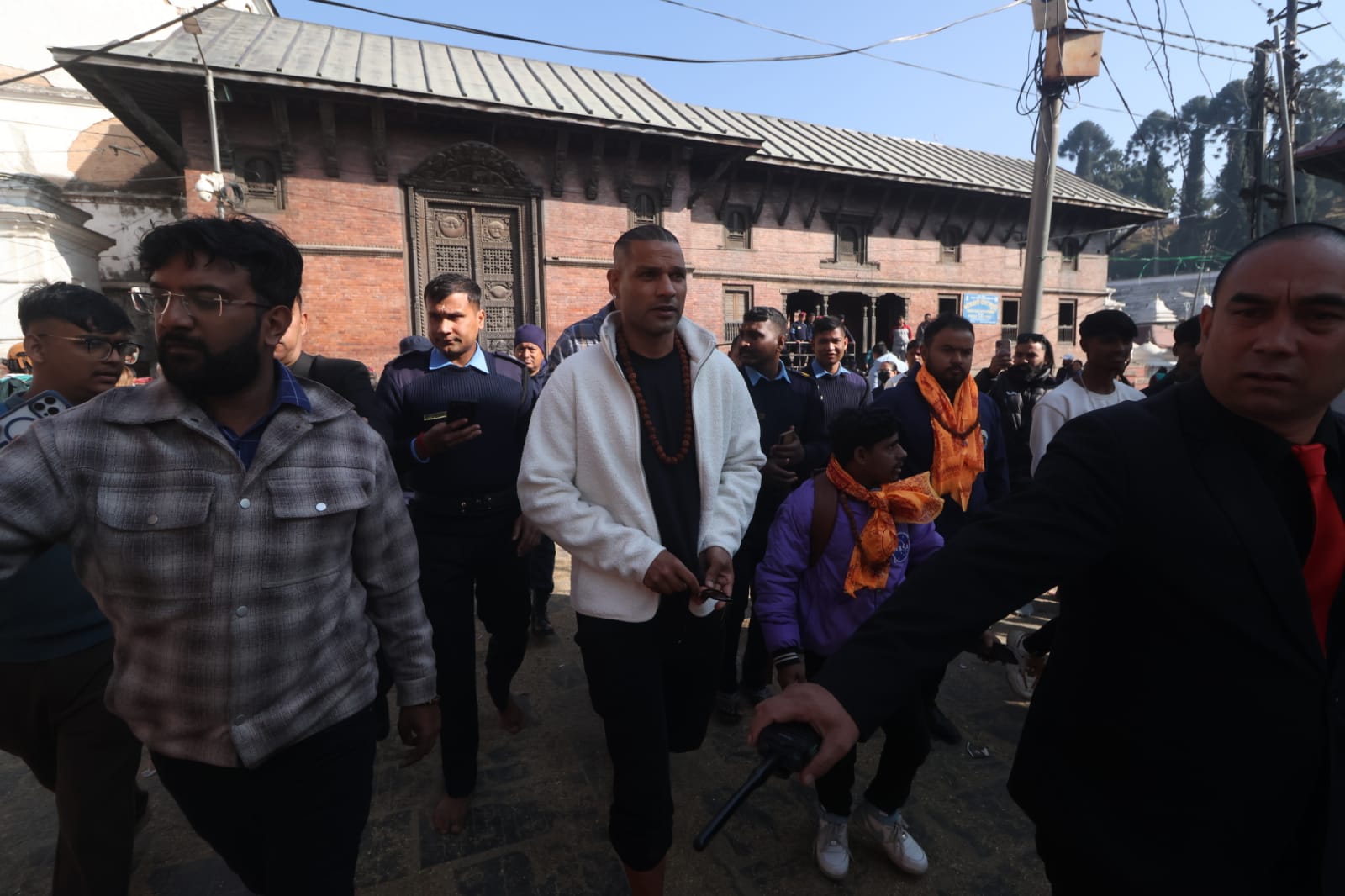 भारतीय खेलाडी शिखर धवनसहित एनपीएल टिम कर्णाली याक्सका खेलाडीहरूले पशुपतिनाथ मन्दिरको दर्शन गरेका छन्।