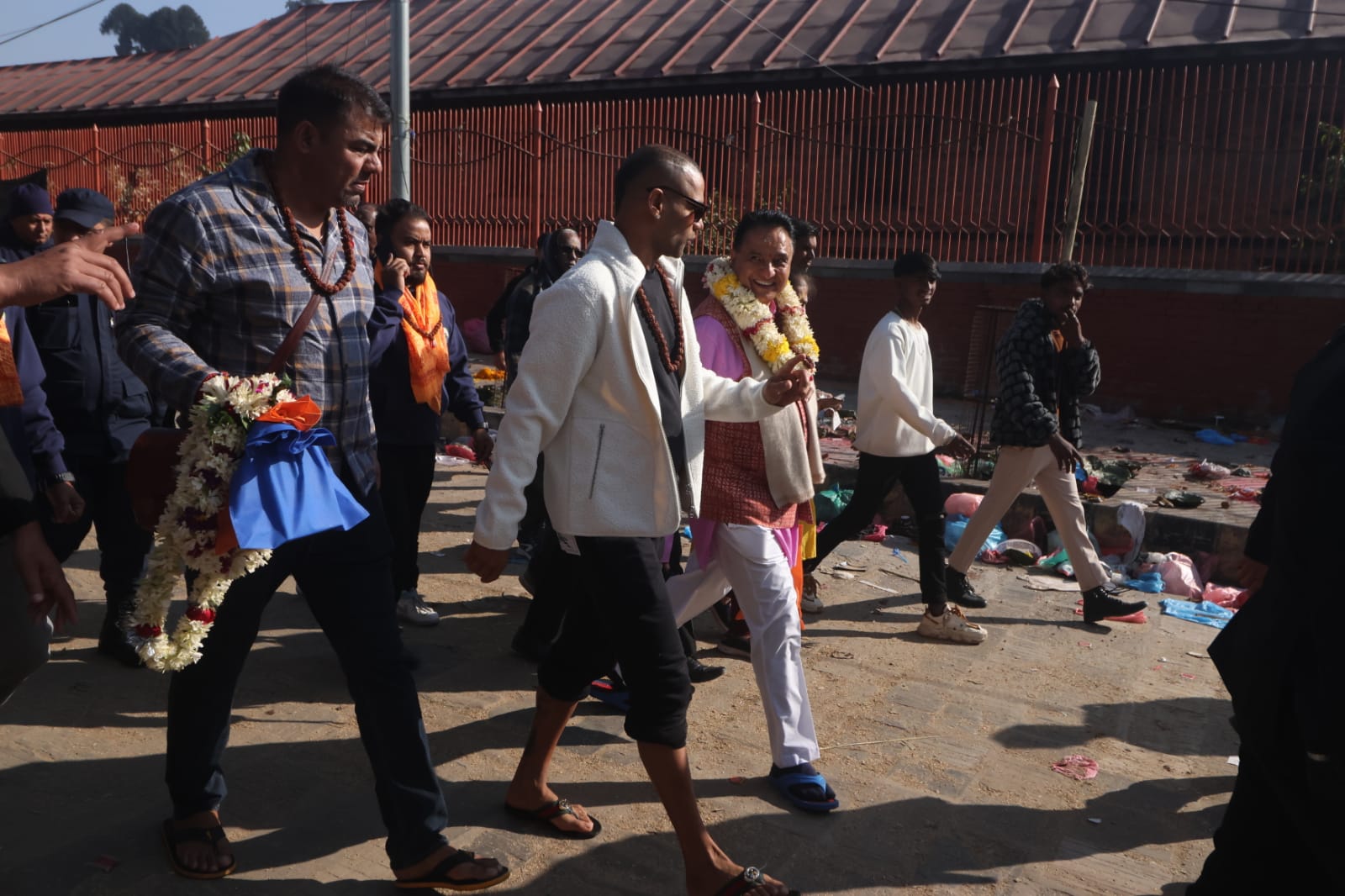 खेलाडीहरू सोमपाल कामी, गुल्शन झा, प्रशिक्षक ज्ञानेन्द्र मल्ल र फेस अफ कर्णाली याक्स स्वस्तिमा खड्कालगायतले मन्दिर दर्शन गरेका हुन्।
