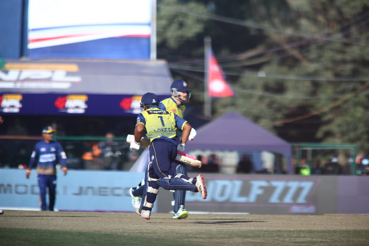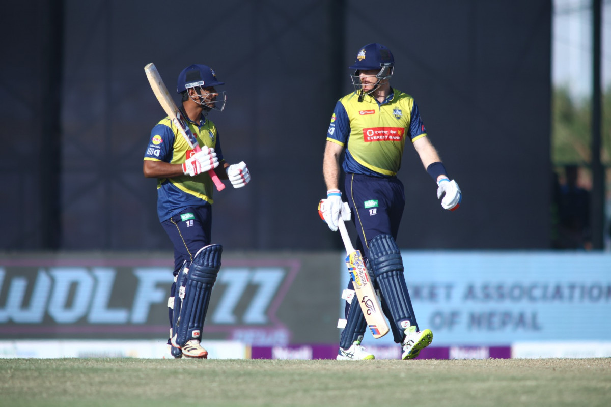 ओपनर आशुतोष घिरोहिया र अर्जुन साउद क्रमशः १५ र १७ रनमा आउट भए। कप्तान रोहित पौडेल र टम मोरेजले तेस्रो विकेटका लागि ६७ रनको साझेदारी गर्दै आक्रामक ब्याटिङ गरे। रोहितले २९ बलमा ४ चौका र २ छक्कासहित ४६ रन बनाए। टम ३० रनमा आउट भए।