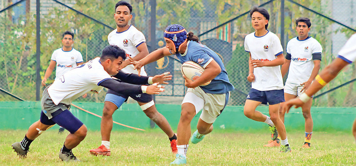 कर्णालीविरुद्ध ट्राइ गर्ने प्रयासमा आयोजक गोर्खाली रग्बी क्लबका रोहण डंगोल। तस्बिर: नागरिक