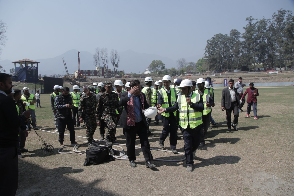 बिहीबार उपप्रधान तथा शहरी विकास मन्त्री प्रकाशमान सिंहले मैदानमा भइरहेको प्यारापेट निर्माण र फ्लडलाईट जडान कार्यको अनुगमन गरेका छन्।