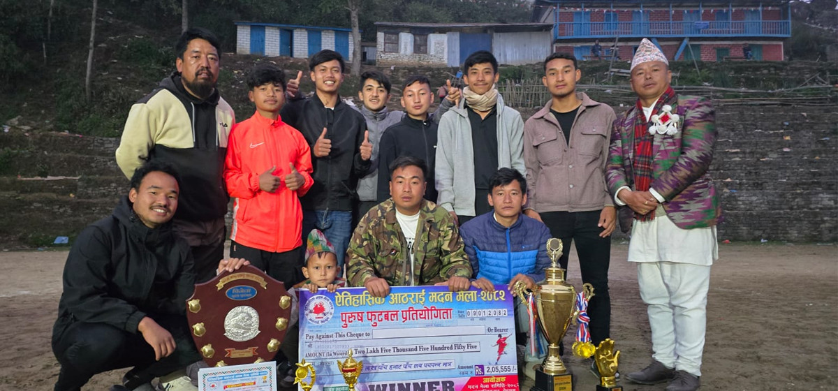 तेह्रथुमको आठराईमा सम्पन्न मदन मेमोरियल खुल्ला पुरूष फुटबल प्रतियोगिताको उपाधि ताप्लेजुङस्थित सोधुङ सेन्दाङ समाजले हात पारेको छ ।