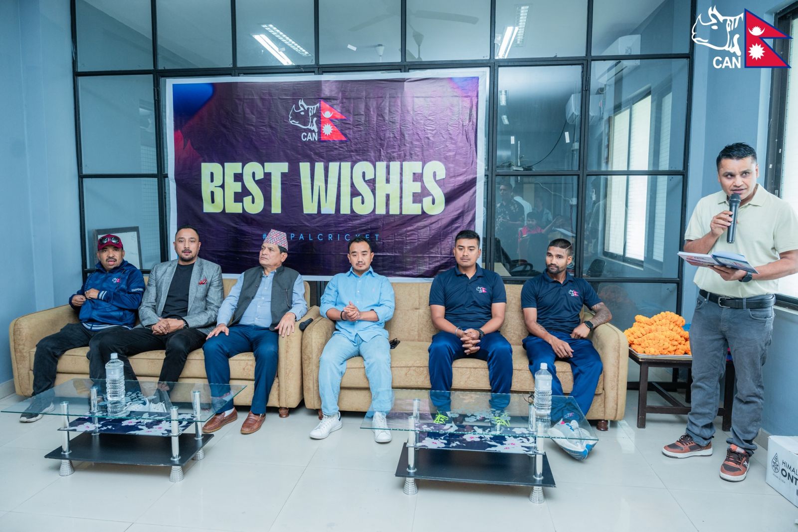 नेपाल क्रिकेट संघ(क्यान)ले स्कटल्यान्डमा हुने आइसिसी विश्वकप लिग–२ को त्रिकोणात्मक सिरिज र टि–२० आई खेल्न जाने राष्ट्रिय टोलीलाई बिदाई गरेको छ। क्यानका अध्यक्ष चतुरबहादुर चन्द, सचिव पारस खड्का लगायत क्यानका पदाधिकारी र टिम व्यवस्थापनसहितको उपस्थितीमा बुधबार टोलीलाई बिदाई गरिएको हो।