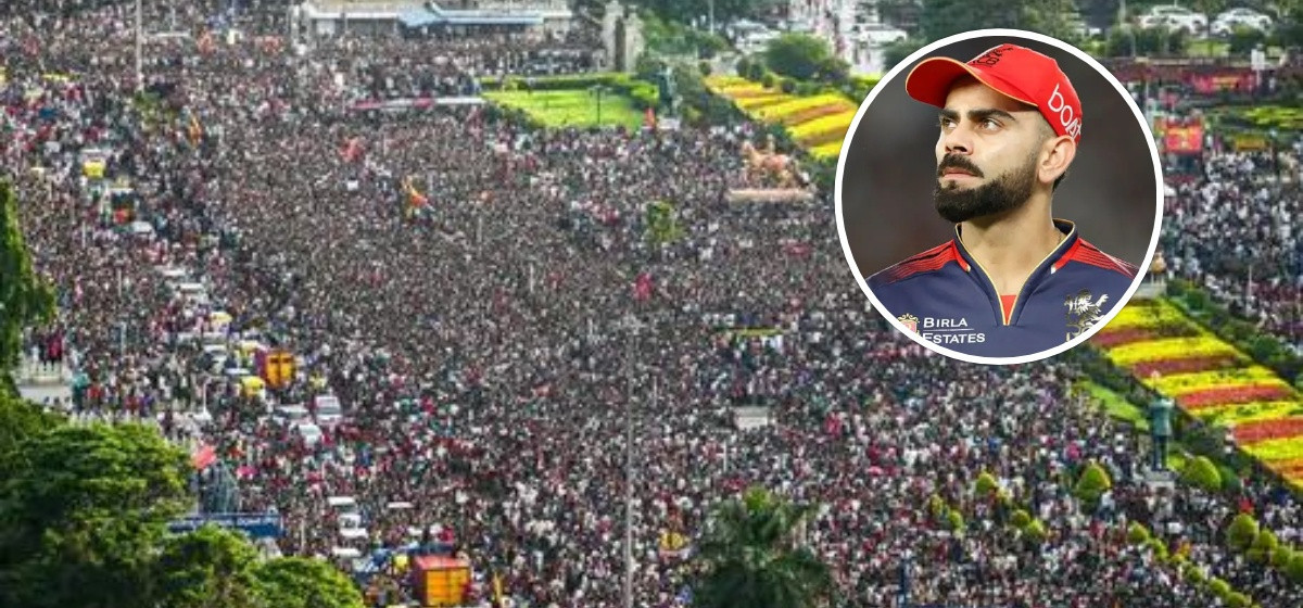 बुधबार आइपिएलमा रोयल च्यालेन्जर्स बैंगलोरको जितको उत्सव मनाउन रंगशाला बाहिर एक लाखभन्दा बढी प्रशंसकहरू भेला भएका थिए।
