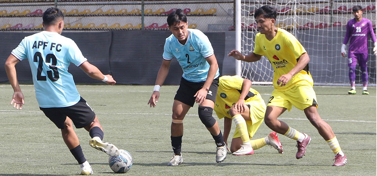 सातदोबाटोस्थित एन्फा कम्प्लेक्समा आइतबार भएको खेलमा एपिएफले मोफसलको टोली नव जनजागृतिमाथि ४–१ को जित निकालेको हो। एपिएफको जितमा हरि कार्की, युवराज खड्का, समीराज थोकर र अनीशा घर्ती क्षेत्रीले समान एक गोल गरे। नव जनजागृतिका लागि निश्चय थापाले सान्त्वना गोल गरेका थिए। पहिलो हाफको खेल १–१ को बराबरीमा नै सकियो तर दोस्रो हाफमा भने एपिएफ आक्रामक बन्यो। तीन गोल थप्दै मोफसलको टोलीमाथि सहजै हाबी भयो। लिगमा नव जनजागृतिको लगातार छैटौं हार हो। यो जितसँगै एपिएफले ६ खेलबाट १६ अंक जोडेको छ। एपिएफले एक मात्र बराबरी एनआरटीसँग सामना गरेको छ। जितविहीन जनजागृतिक अंकविहीन छ।