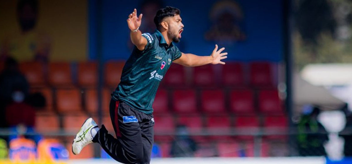 इनिङको दोस्रो ओभर लिएर आएका धनन्जयले सो ओभरमा दुई विकेट लिए। उनले १.२ ओभरमा ओपनर अर्जुन साउदलाई १ रनमा बोल्ड गरे।