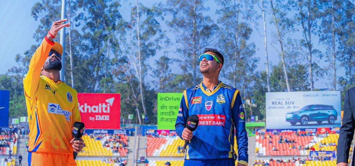 कीर्तिपुरस्थित त्रिवि क्रिकेट मैदानमा केहीबेरअघि भएको टसमा विराटनगर किङ्सले टस जितेर पहिला फिल्डिङ गर्ने निर्णय गरेको छ। विराटनगरको यस निर्णयसँगै अब सुदूरपश्चिम रोयल्स पहिला ब्याटिङ गर्न मैदान उत्रिनेछ।