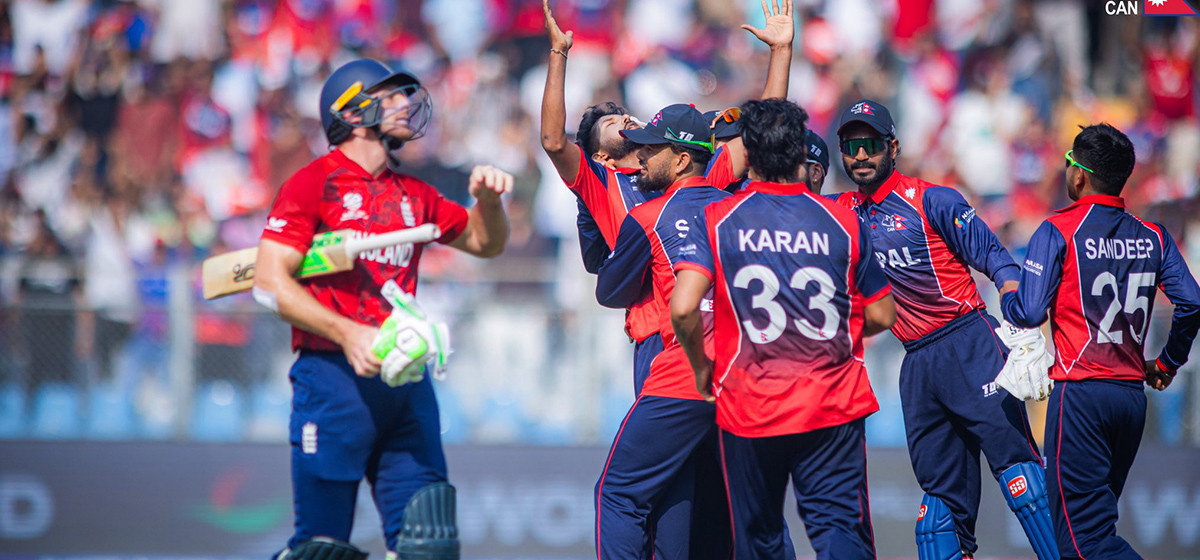 मुम्बईस्थित वाङ्खडे स्टेडियममा भएको समूह ‘सी’ को खेलमा टस जितेर पहिले ब्याटिङ गरेको इङ्ल्यान्डले पूरै ओभरमा सात विकेट गुमाउँदै एक सय ८४ रन जोडेको हो। ज्याकबले ५५ रन र कप्तान ह्यारी ब्रुकले ५३ रनको इनिङ खेल्दै नेपाललाई बलियो लक्ष्य दिएका हुन्। जस बटलरले २६ रनमा आउट हुँदा विल ज्याक्सले ३० रन जोडे।