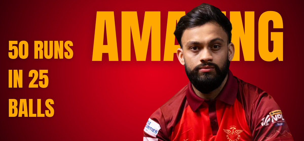 विशाल लक्ष्यको दबाबमा पनि उनले सुरुदेखि नै निडर ब्याटिङ गर्दै विराटनगरका बलरहरूमाथि दबाब बनाएका थिए।