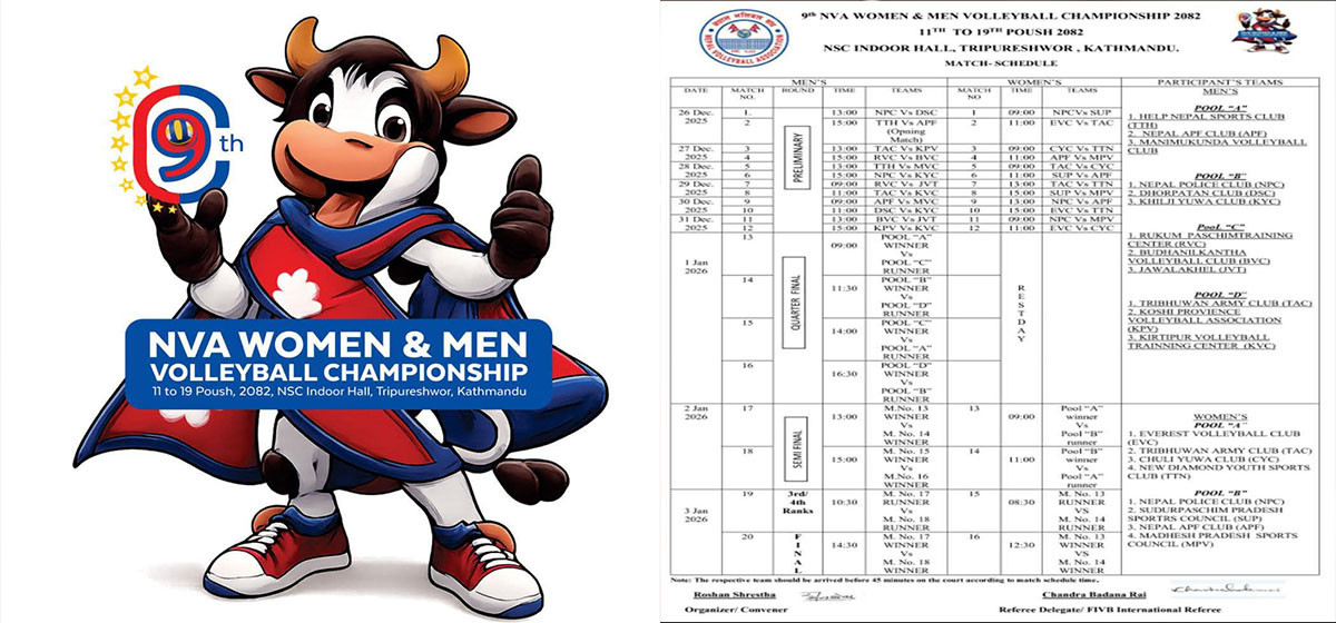 नवौँ एनभिए भलिबल च्याम्पियनसिपको खेल तालिका सार्वजनिक भएको छ।