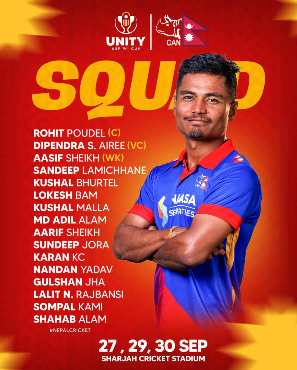 सोमबार नेपाल क्रिकेट संघ (क्यान)ले रोहित कुमार पौडेलको कप्तानीमा १६ सदस्यीय टोलीको घोषणा गरेको हो।