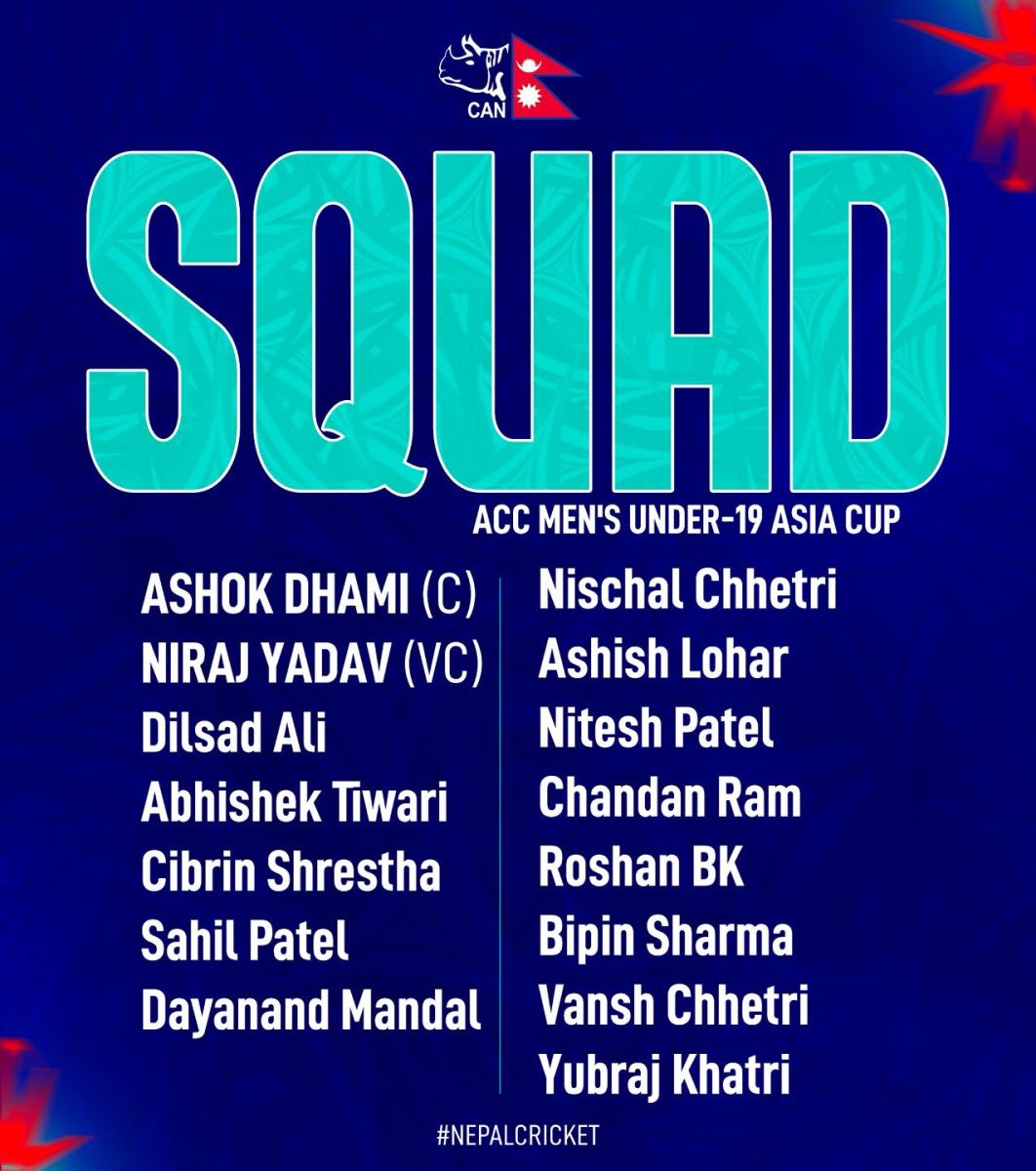 नेपाल क्रिकेट सङ्घ (क्यान) ले आज अशोक धामीको कप्तानीमा १५ सदस्यीय टोली घोषणाा गरेको हो।