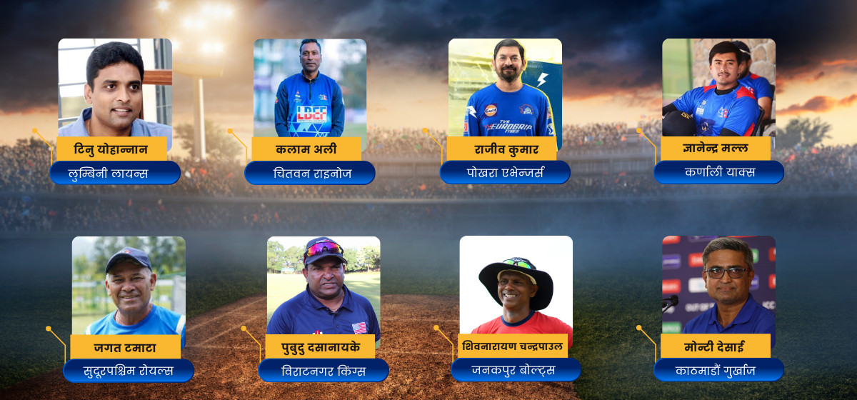 मंसिरको अन्तिम सातासम्म चल्ने यस प्रतियोगिताका लागि फ्रेन्चाइज टोलीहरूले अन्तर्राष्ट्रिय ख्यातिप्राप्त दिग्गजदेखि नेपाली क्रिकेटलाई नजिकबाट बुझेका अनुभवी प्रशिक्षकहरूलाई आफ्नो रणनीतिक नेतृत्व सुम्पिएका छन्।