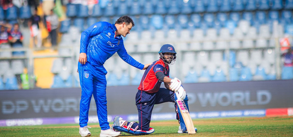 कप्तान रोहित पौडेलले क्रिजमा आउनासाथ आक्रामक ब्याटिङ गर्दै इटालीका बलरहरूलाई दबाबमा राखेका छन्।