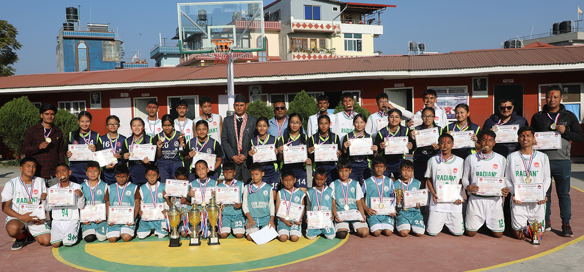 तीन टोली आयोजक रेडियन्ट पब्लिक, स्वर्णिम र इडेन ब्रिज एकेडेमी (इबिए) ले ११औं रेडियन्ट कप अन्तरविद्यालय बास्केटबल प्रतियोगिताको उपाधि उचालेका छन्।