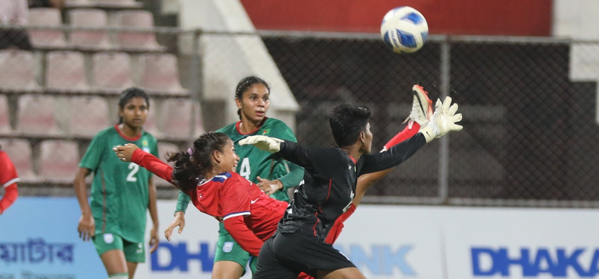 साफ यू-२० महिला च्याम्पियनसिपको निर्णायक खेलमा नेपाल आयोजक बंगलादेशविरुद्ध १-० ले पछि परेको छ।