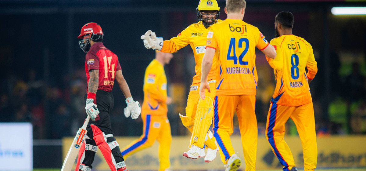 १९४ रनको लक्ष्य सानो थिएन। यसपटक पोखराका ब्याटिङको माथिल्लो क्रम धरासायी भयो। पाँचौँ ओभरमा २० रनमै ३ विकेट गुम्न पुगे। त्यसपछि कप्तान कुशल भुर्तेल र न्युजिल्यान्डका स्टार क्रिकेटर जिम्मी निसमले ११ ओभरमा ९० भन्दा माथि पुगाउँदै ७५ रनको तेजतर्रार साझेदारी निभाए।