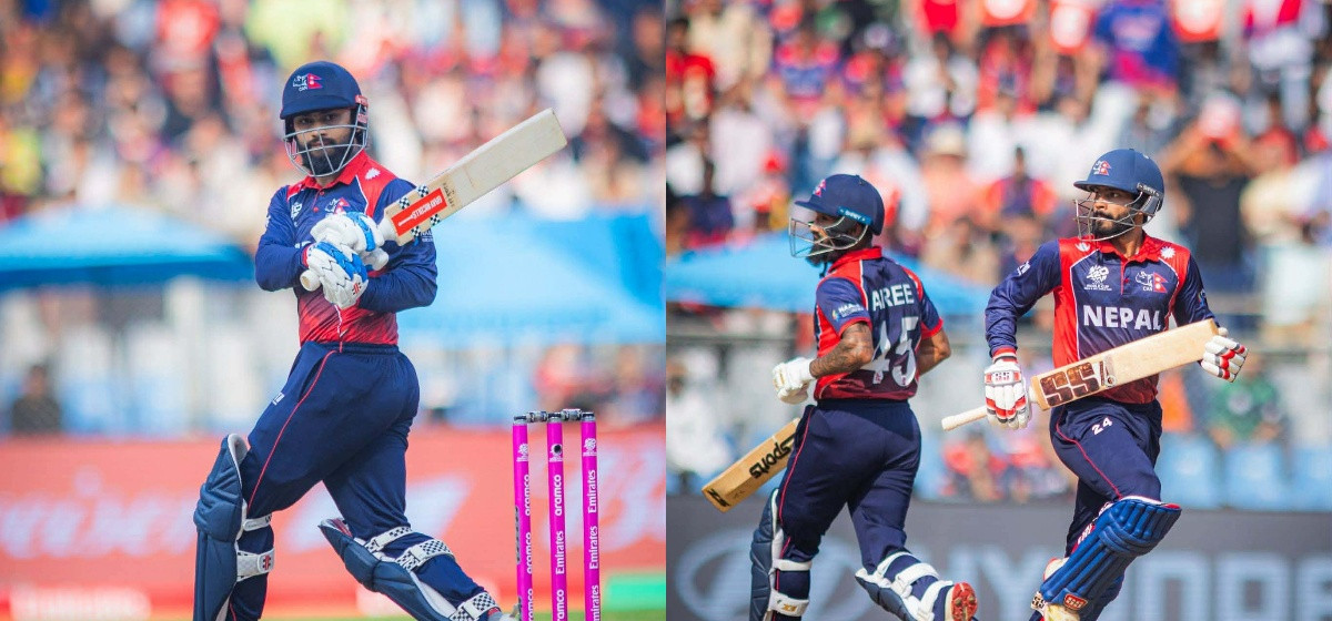 त्यस्तैगरी नेपालका कप्तान रोहितकुमार पौडेलले ५ रन र नेपालका अर्का ओपनर आसिफ शेखले ११ रन बनाएर पेभिलियन फर्किएका थिए।