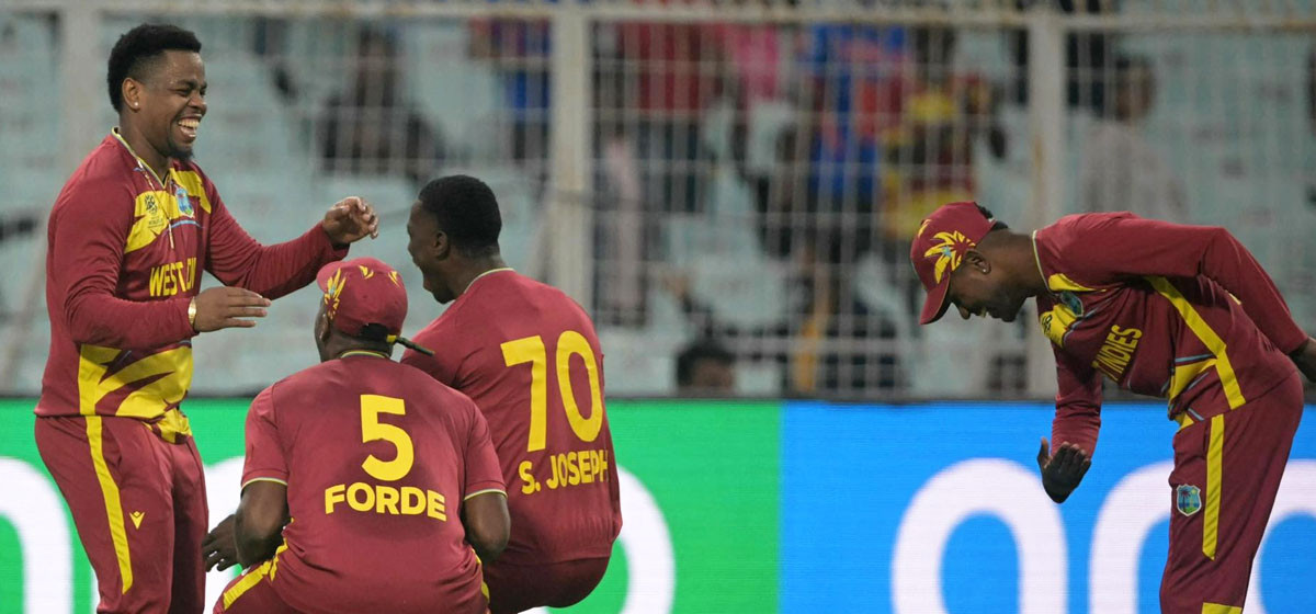 शनिबार कोलकत्ताको इडेन गार्डेनमा भएको समूह ‘सी’ को खेलमा वेस्ट इन्डिजले स्कटल्यान्डलाई ३५ रनले पराजित गरेको हो।