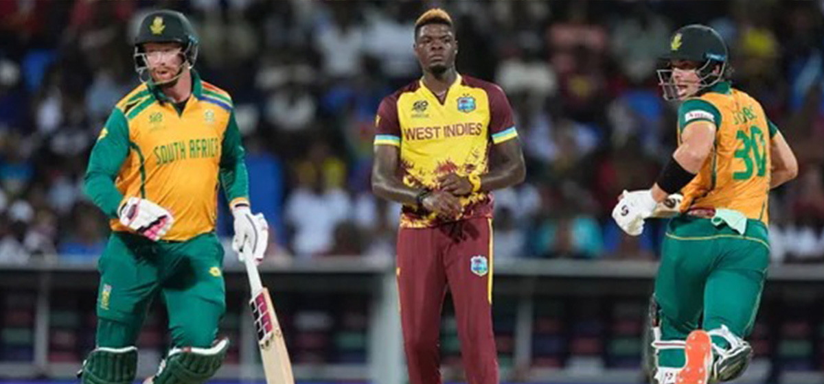 जारी टी-२० पुरुष विश्वपकमा आज बलियो टोली दक्षिण अफ्रिका र वेस्ट इन्डिजबीच प्रतिस्पर्धा हुँदैछ।