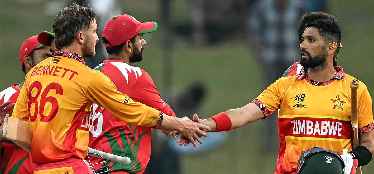 आइसीसी पुरुष टी-२० विश्वकप अन्तर्गत सोमबार भएको समूह ‘बी’ को खेलमा जिम्बाब्वेले ओमानलाई ८ विकेटको फराकिलो अन्तरले पराजित गरेको छ।