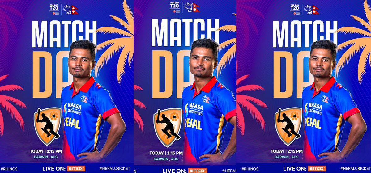 अस्ट्रेलियाको डार्विनमा जारी ‘टप एण्ड टी–२० सिरिज’को उद्घाटन खेल आज नेपाल र अस्ट्रेलियाली क्लब नर्दर्न टेरिटोरी स्ट्राइकरबीच हुँदैछ।