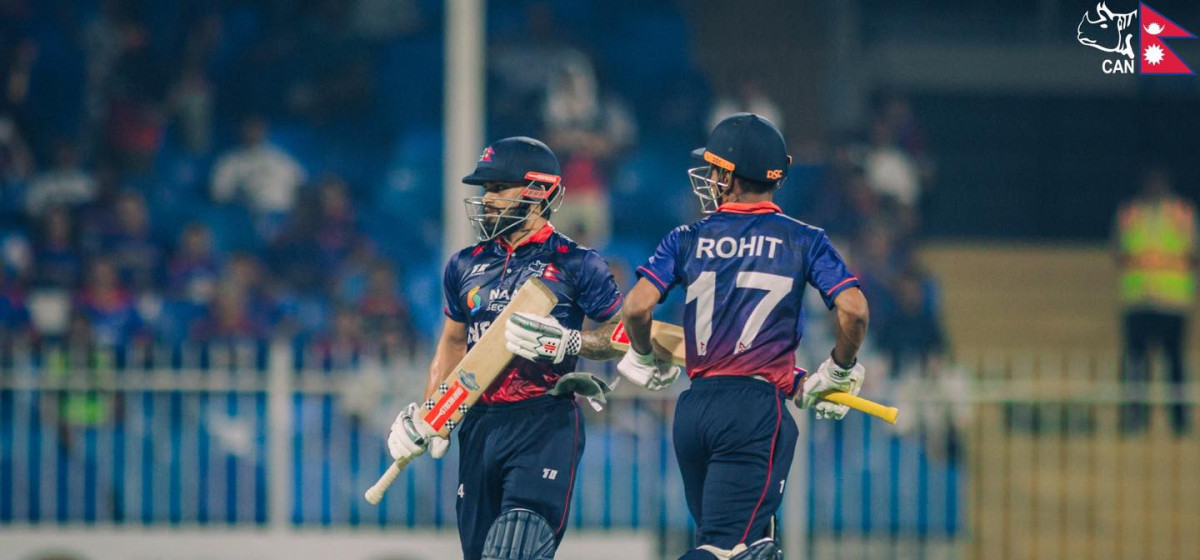 दुबईको शारजहामा पहिला ब्याटिङ गरेको नेपालले १९.५ ओभरमा सबै विकेट गुमाएर १२२ रन बनाएको हो । आसिफ शेख, दीपेन्द्र सिंह ऐरी र ललित राजवंशीलाई आराम दिँदै ब्याटिङमा उत्रिएको नेपालका लागि कुशल भुर्तेलले ३९ रन जोडे ।