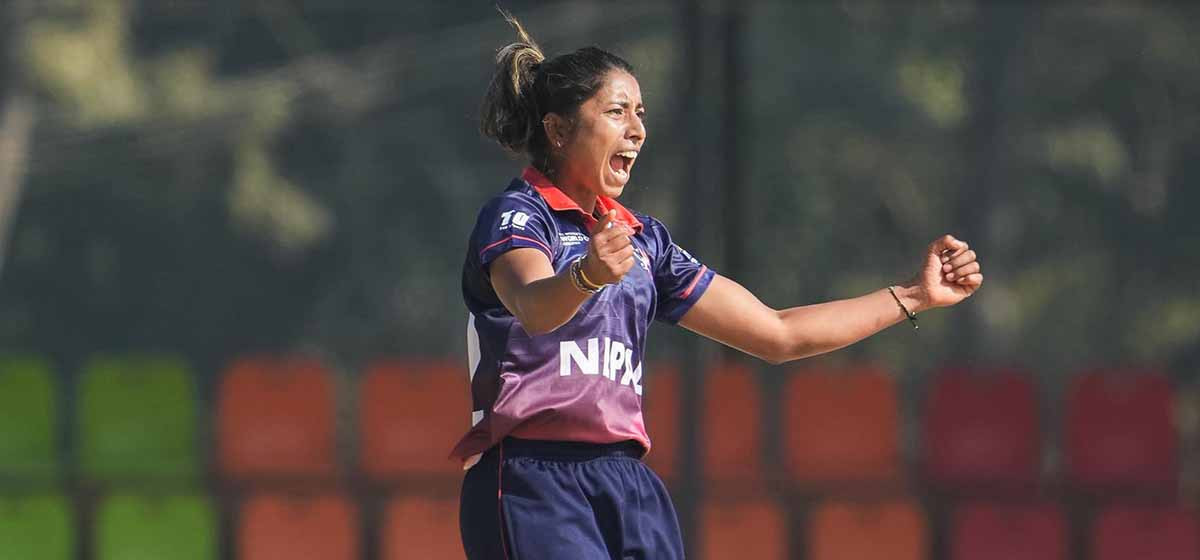 नेपालका लागि पूजा महतोले दोस्रो विकेट लिइन्। उनले ओपनर हेदर सिगर्सलाई आउट गरेकी हुन्।