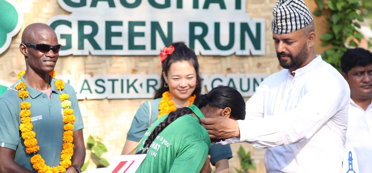 जलवायु परिवर्तनको विश्वव्यापी मुद्दालाई स्थानीय तहमा जागरण फैलाउने उद्देश्यले आयोजित गौघाट ग्रीन रनको उपाधि युवकराज बुढा र दीपशीखा शाहीले जितेका छन्।