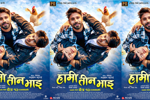 सार्वजनिक पोस्टरमा तीन कलाकार विनोद न्यौपाने, फलित राई र कुशल विष्ट रोमान्टिक मुडमा प्रस्तुत भएका छन्।