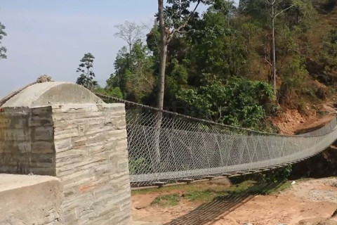 ज्यानको जोखिम मोलेर काठको फड्केबाट खकुवाखोला तर्दै आएका यहाँका स्थानीयलाई झोलुङ्गे पुल बनेपछि सहजता भएको छ।