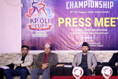 राष्ट्रिय युवा संघ नेपालले फागुन ११ गतेदेखि १९ गतेसम्म केपी ओली कप २०८० गर्ने भएको छ। काठमाडौँको बानेश्वरमा आज पत्रकार सम्मेलन गर्दै युवा संघले केपी ओली कपको बारेमा जानकारी दिएको हो।