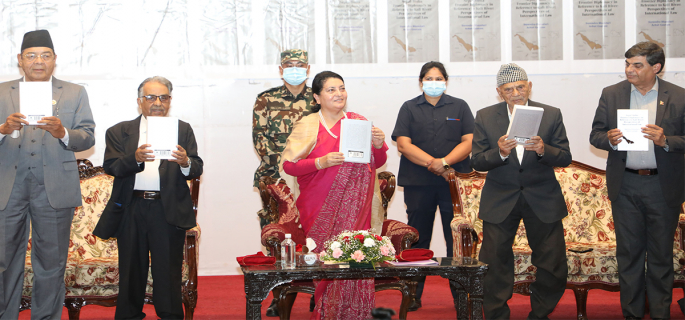 राष्ट्रपति नेपालको राष्ट्राध्यक्ष हुने र संविधान र कानुन बमोजिम उसले आफ्नो कार्य सम्पादन गर्नुपर्ने व्यवस्था छ।