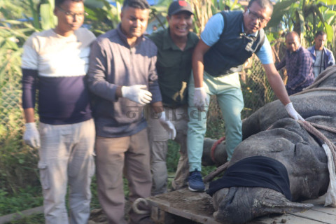 दिनहुँ बस्ती पसेर गाउँलेलाई दु:ख दिने गैँडाको स्थानान्तरण