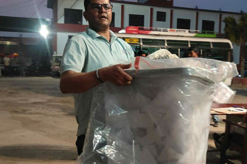 निर्वाचन अधिकृतको कार्यालयका अनुसार तीनवटै निर्वाचन क्षेत्रका मतपेटिका सुरक्षाकर्मीको टोलीसहित मतदान अधिकृत र सहायक मतदान अधिकृतले सुरक्षित रूपमा मतगणना स्थलमा पुर्याइरहेका छन्।
