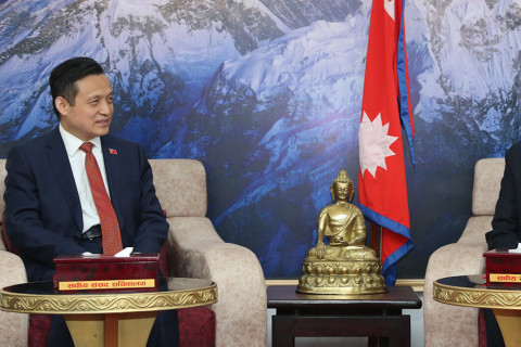 राष्ट्रिय सभाका अध्यक्ष नारायणप्रसाद दाहालसँग नेपालका लागि नवनियुक्त चिनियाँ राजदूत चाङ माओमिङले शिष्टाचार भेट गरेका छन्।