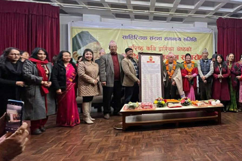 नेपाली भाषा, साहित्य, कला, संस्कृति र साहित्यिक पत्रकारितामा योगदान गर्दै आएका एकाउन्न संस्थाको साझा मञ्च ‘साहित्यिक संस्था समन्वय समिति’ ले ९१ वर्षीय वरिष्ठ कवि द्वारिका श्रेष्ठलाई सामूहिक अभिनन्दन गरेको छ।